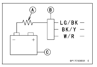 Fuel Level Warning Indicator Light (LED) [A] goes on “FUEL” blinks [B]