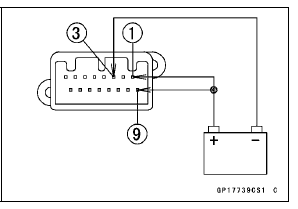 Connect the battery positive (+) terminal to the terminal [1] [9].