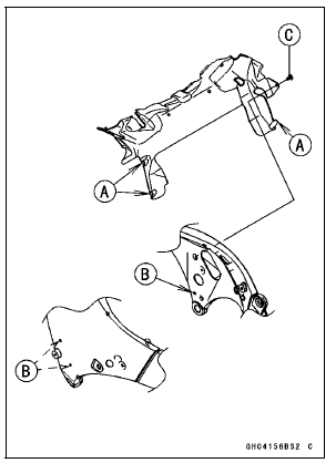 Middle Engine Mounting Bolt [A] Lower Engine Mounting Bolt [B] Left Front Engine Mounting Bolt [C] Right Front Engine Mounting Bolt [D]