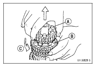 Set the output shaft in a vertical position holding the 3rd gear [B].